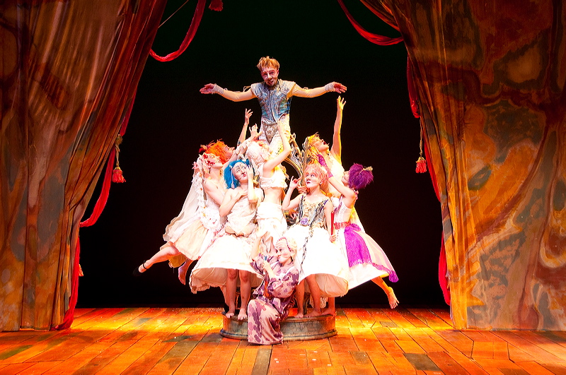 『ドン・ファン』は、演出家オマール・ポラスをSPACに迎えて制作した仮面劇です。オマール・ポラスは現在スイスで活躍するコロンビア出身の演出家で、鮮烈なヴィジュアルを伴う躍動感に溢れた舞台を得意とし、自身が主宰する劇団「テアトロ・マランドロ」はスイスの人気劇団になっています。そのオマール・ポラスが、2009年の夏から秋にかけて静岡に滞在し、SPAC俳優と共にこの作品に取り組みました。<コメディア・デラルテ>と呼ばれる16世紀イタリア発祥の仮面即興劇の要素を本格的に取り入れた本作は、日本人俳優が出演したものとしてはこれまでにないものとして驚きと賞賛をもって受け入れられました。仮面をつけた俳優たちは、可愛いような気味の悪いような、またどこか妖艶な雰囲気を漂わせ、絵本の世界にも似た夢のような舞台を創り上げます。オマール・ポラスの演出や極彩色の舞台美術が織りなす、独自のラテン的な世界をお楽しみください!