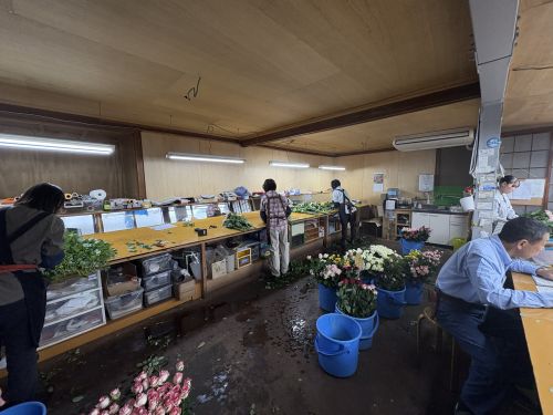 最初に本企画の相談に伺ったのは、まだまだ猛烈な暑さが続く9月頭。作業場ではまさに出荷作業中で、色とりどりのバラが、一本一本、長さや花びらの大きさ、色によって仕分けられ、手際よくまとめられていました。