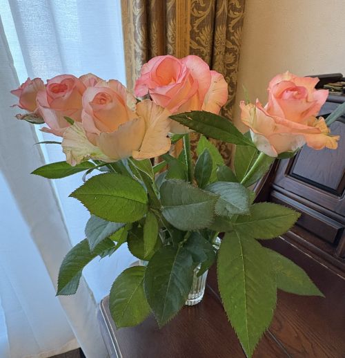 北川バラ園さまのバラは花持ちの良さで定評があり、私も出荷に適さないバラ(素人目には全然分かりません…)を何本かご主人にいただいたのですが、連日の酷暑で正直3日くらいで花首がへたってしまうかな…と覚悟していたところ、花瓶の水替えと切り戻しで1週間以上美しく咲き続けました!
