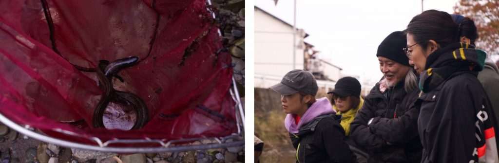 川でのうなぎ生態調査(撮影:SPAC制作部@坂中季樹)