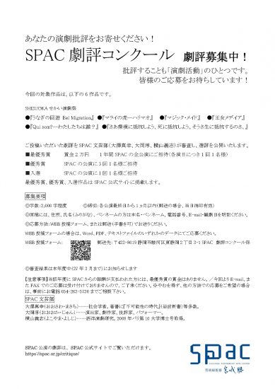 ▼「SPAC秋のシーズン2025-2026」劇評コンクールのご案内 ただいま審査中